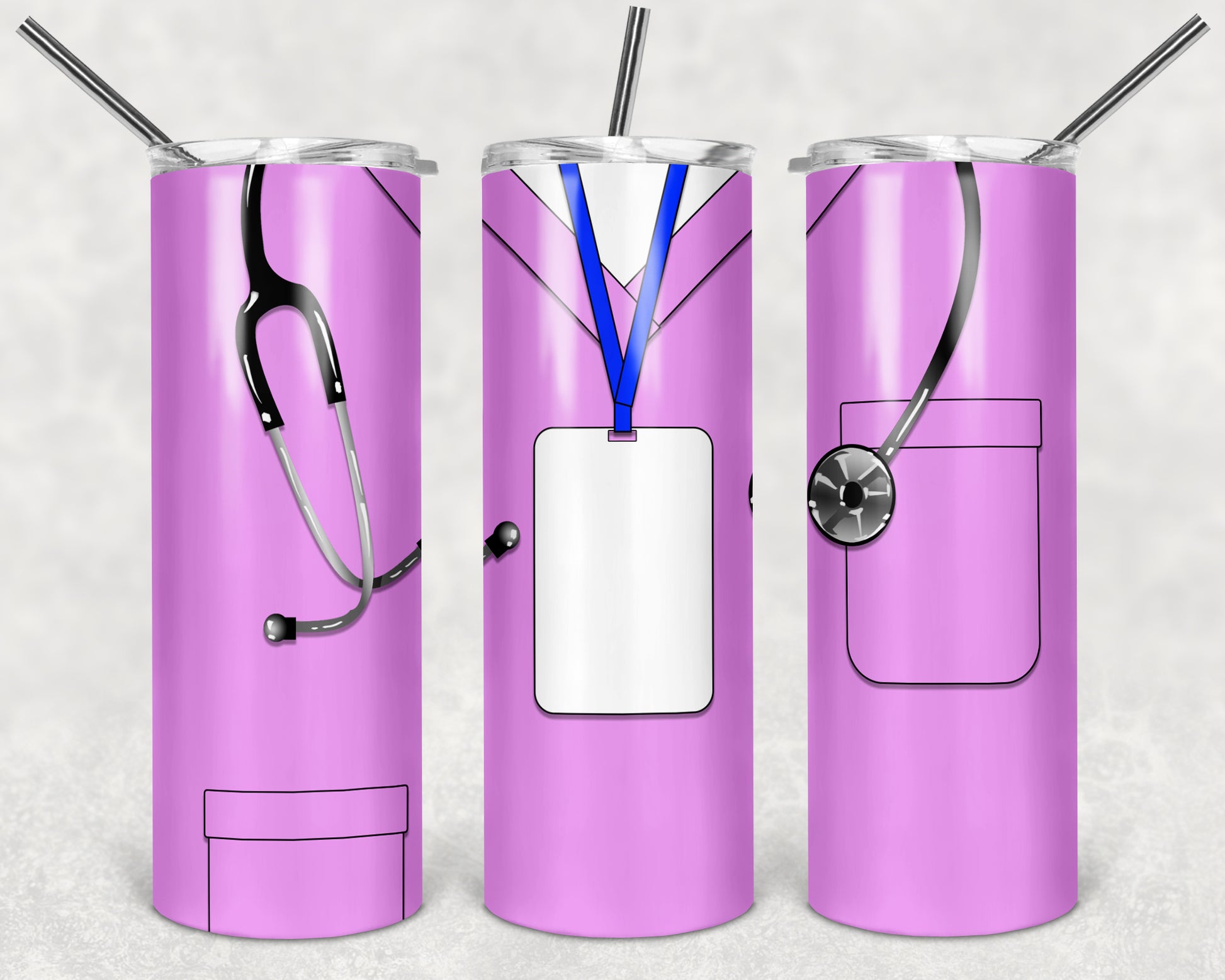 Solid Pink Scrubs 20oz Skinny Tumbler – Insulated Stainless Steel with Straws & Brush