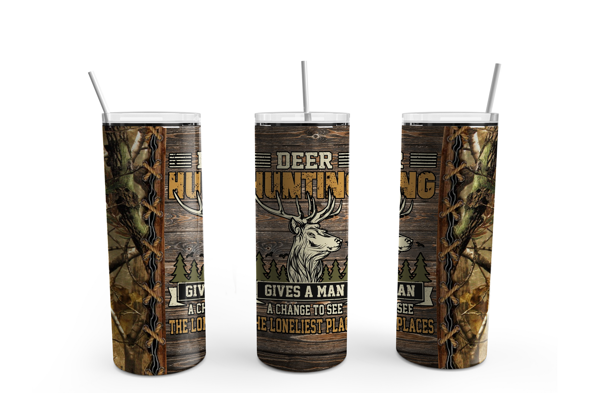 Deer Hunter 20oz Skinny Tumbler – Insulated Stainless Steel with Straws & Brush