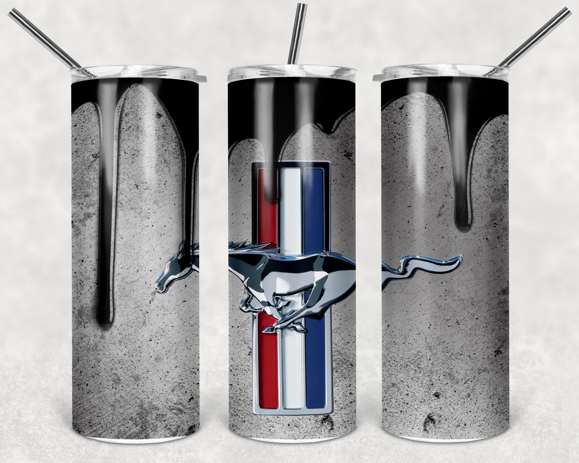 Mustang Oil Drip 20oz Skinny Tumbler – Insulated Stainless Steel with Straws & Brush