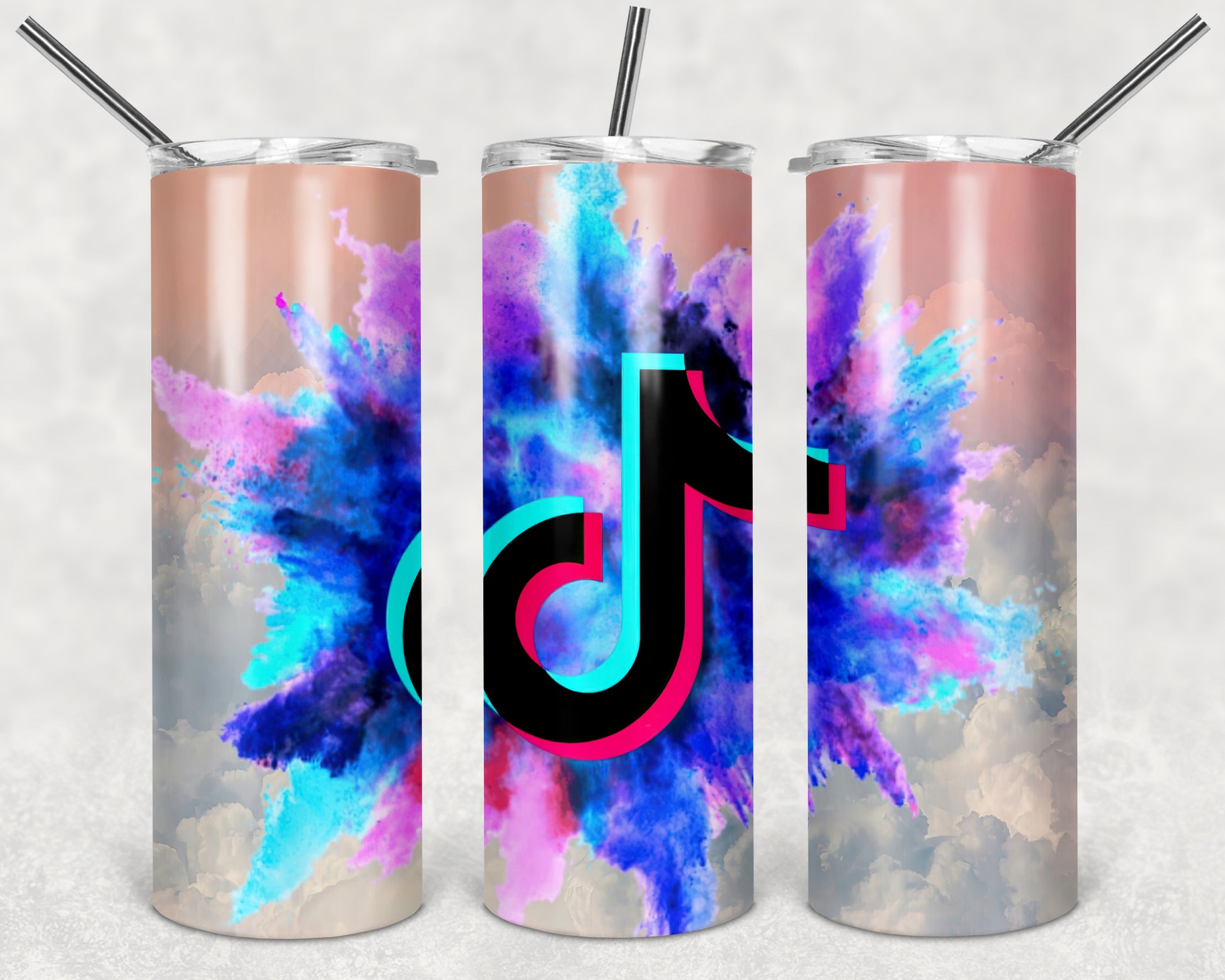 Tik Tok Burst 20oz Skinny Tumbler – Insulated Stainless Steel with Straws & Brush
