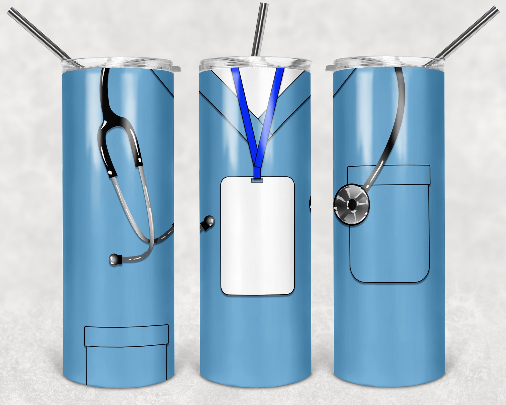Blue Scrubs 20oz Skinny Tumbler – Insulated Stainless Steel with Straws & Brush