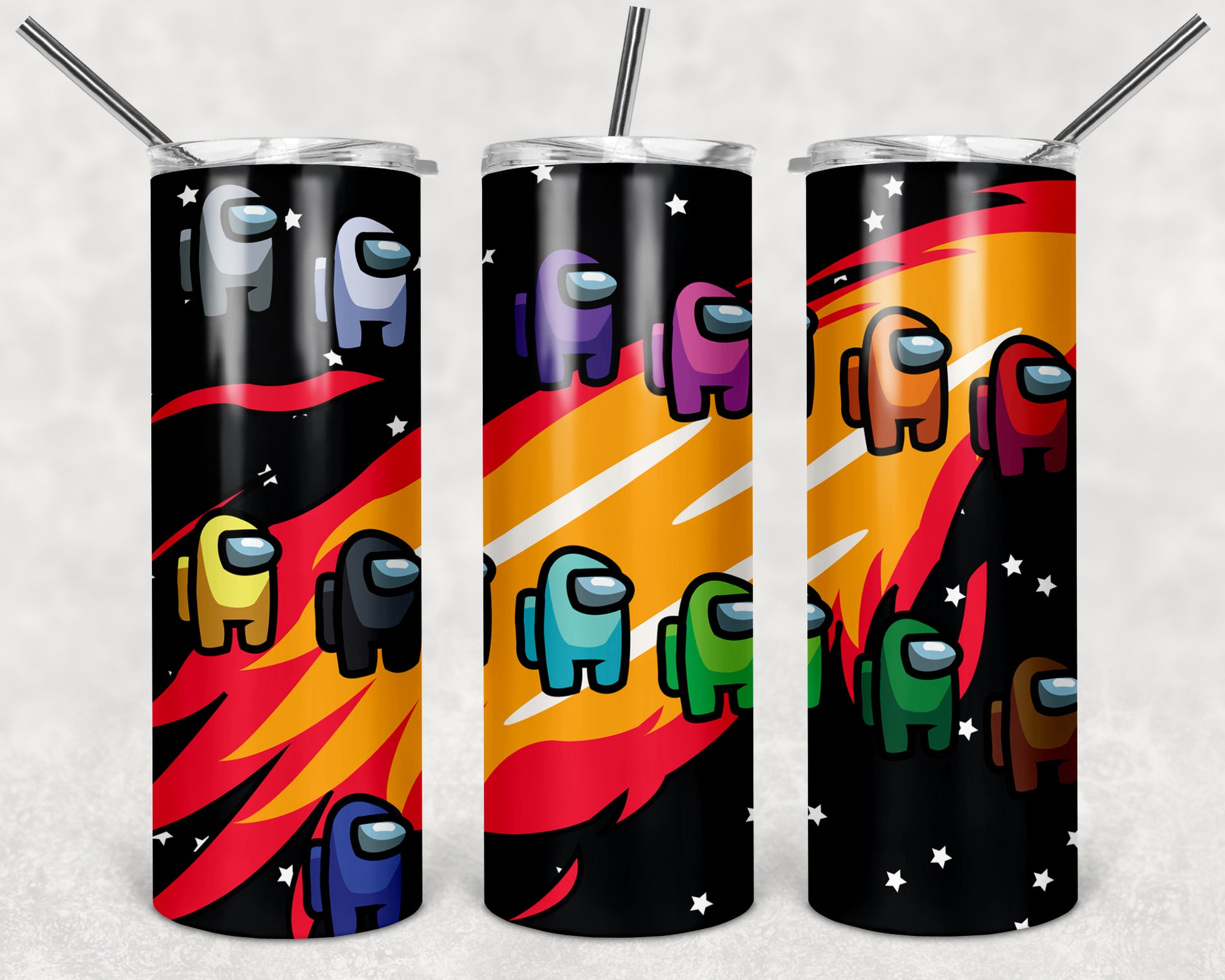 Among Us With Flames 20oz Skinny Tumbler – Insulated Stainless Steel with Straws & Brush