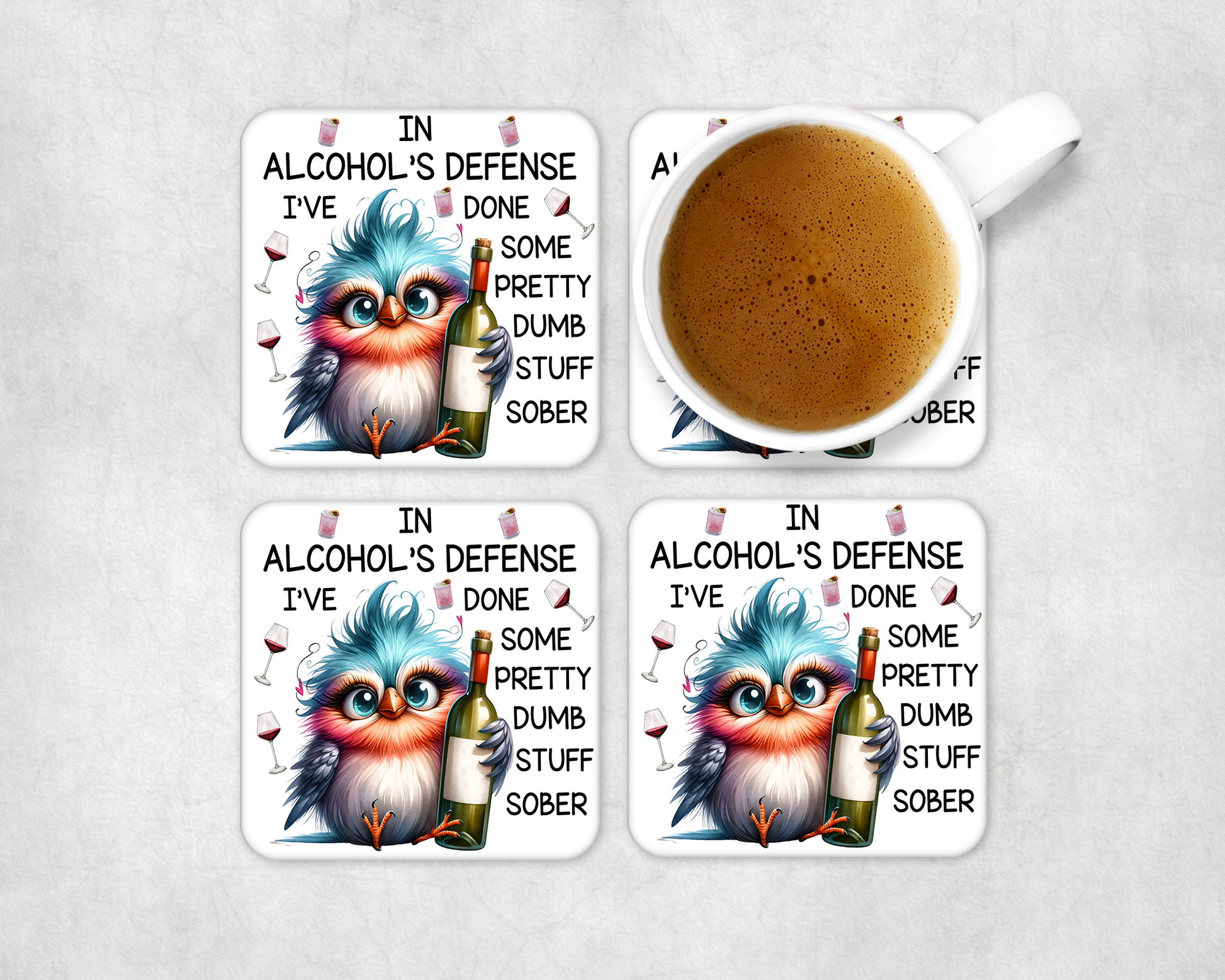 Set Of 4 Coasters With Alcohols Defense – Absorbent Coaster with Non-Slip Backing
